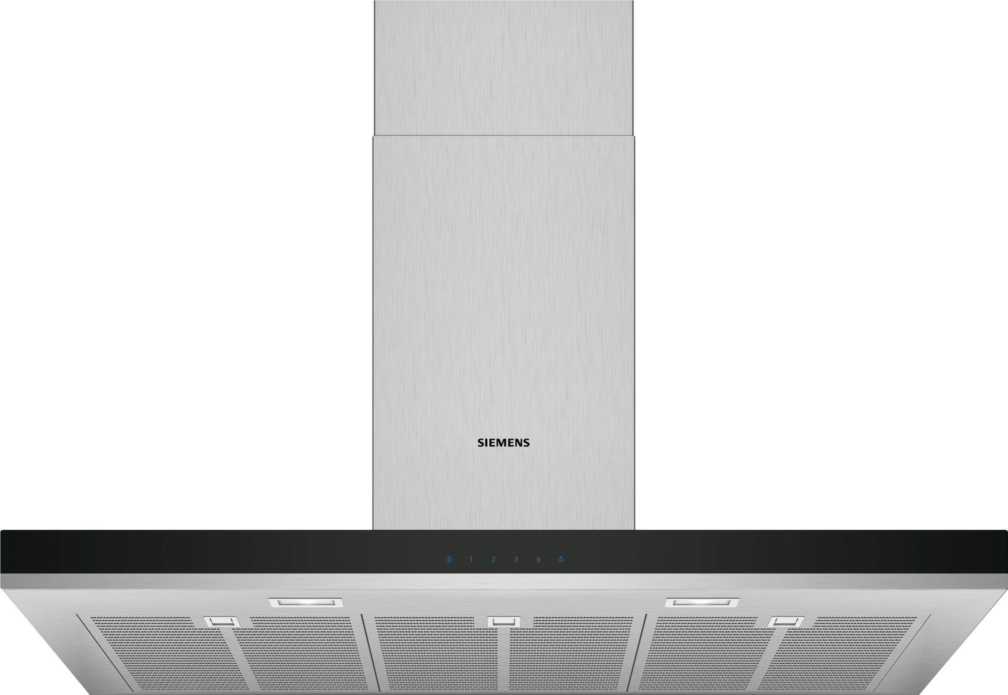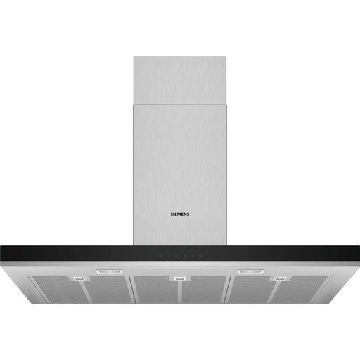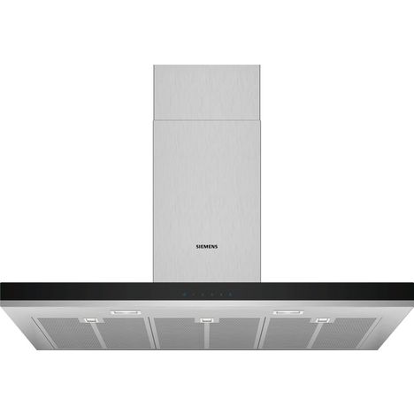 Siemens LC97BHM50 Hotte décorative murale iQ300 Siemens LC97BHM50. Hotte design box avec un haut niveau d'extraction. Puissance du moteur avec un haut niveau d'extraction de 710 m³/h pour un air sain dans la cuisine.L'éclairage économique associé à la technologie LED assure une visibilité optimale l