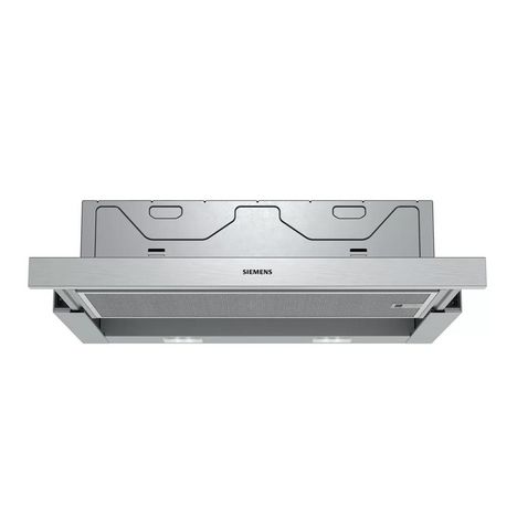 Siemens LI64MB521 Hotte télescopique : une installation quasi invisible dans le meuble au dessus de la table de cuisson.Éclairage LED : visibilité et atmosphère idéales pour cuisiner. - Hotte télescopiqueLargeur : 60 cmEn mode évacuation ou recyclage (avec kit en option)1 moteurTouches, 3 vitessesNi