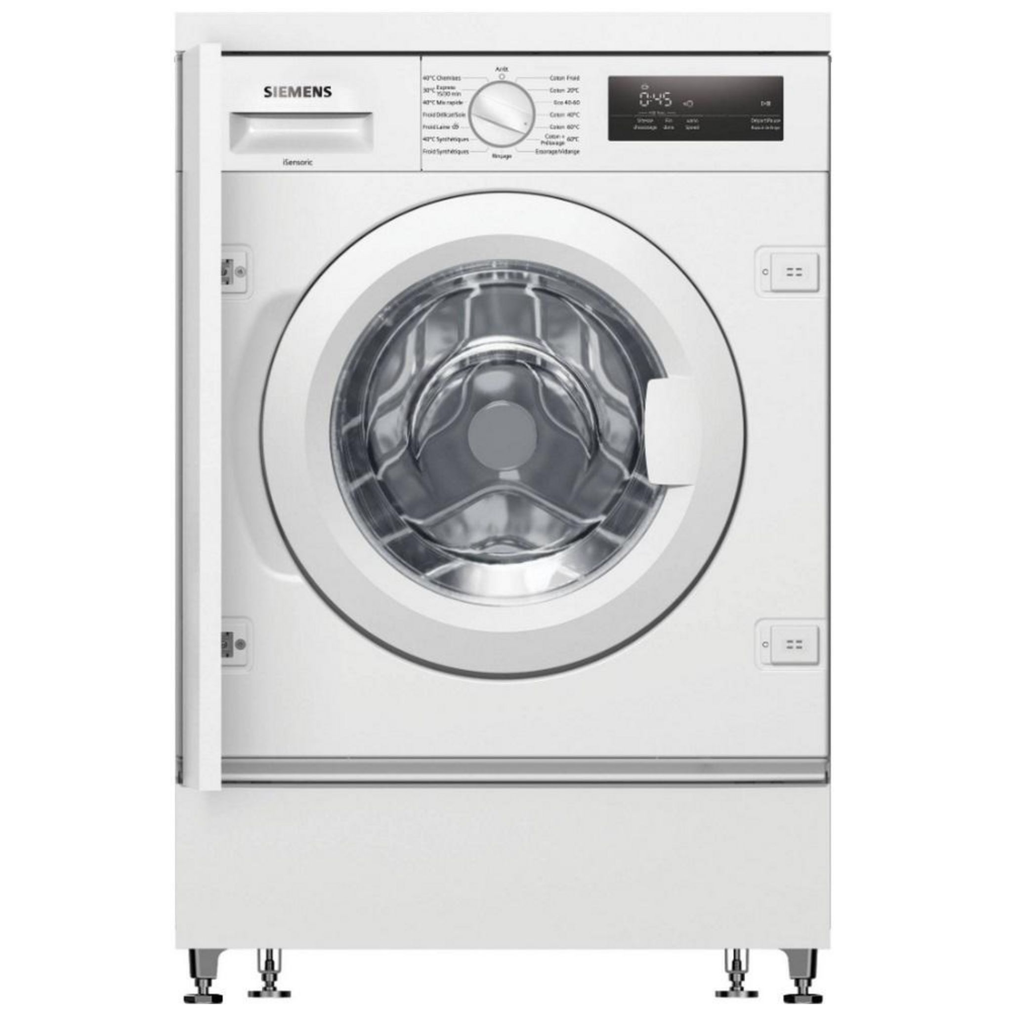 Siemens WI12W348FF Lave-linge iSensoric tout intégrable Siemens iQ500 WI12W348FF avec moteur iQdrive. speedPack L : accélérez vos programmes ou optez pour un lavage en 15 minutes seulement. Moteur induction iQdrive : efficace, silencieux, économe et garanti 10 ans. waterPerfect plus : des capteurs ultra-précis analysent la quantité de linge chargé et en déduisent la quantité d'eau nécessaire, au litre près. Tambour waveDrum pour un soin optimal des textiles. Eclairage tambour par LED : fini, les chaussettes oubliées au fond du tambour.