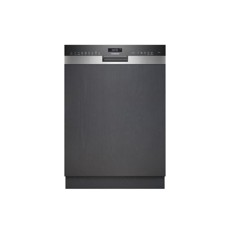 Siemens SN55ES12CE Lave-vaisselle encastrable SN55ES12CE iQ500 de Siemens. Avec ses 8 programmes, il s'adapte à tous vos besoins, du cycle Intensif 70 °C pour un lavage en profondeur au mode Silence 50 °C pour un fonctionnement ultra-discret. Son option varioSpeed Plus accélère le lavage et le séchage jusqu'à trois fois pour un gain de temps optimal. Grâce à Home Connect, contrôlez votre appareil à distance et accédez à des options exclusives comme HygienePlus ou Silence à la demande. Son tiroir à couverts libère de l'espace et simplifie le chargement. Les paniers flexComfort, avec picots rabattables et panier supérieur ajustable, garantissent un agencement optimal. La glassZone protège vos verres fragiles grâce à six buses rotatives. Son moteur iQdrive assure une performance silencieuse avec seulement 42 dB. Équipé d'un séchage optimisé avec ouverture automatique de la porte, d'un aquaSensor qui ajuste la consommation d'eau et d'une boîte à produits maxiPerformance pour un dosage efficace. Sécurités maximales avec aquaStop et sécurité enfant. Cuve en inox pour une meilleure durabilité - Bandeau inox avec commandes sensitives et affichage du temps restant. Départ différé jusqu'à 24 h - Cet appareil est intégrable : Il est livré sans habillage ni porte décorative, afin de vous permettre de l'assortir au mobilier et à la couleur de votre cuisine.
