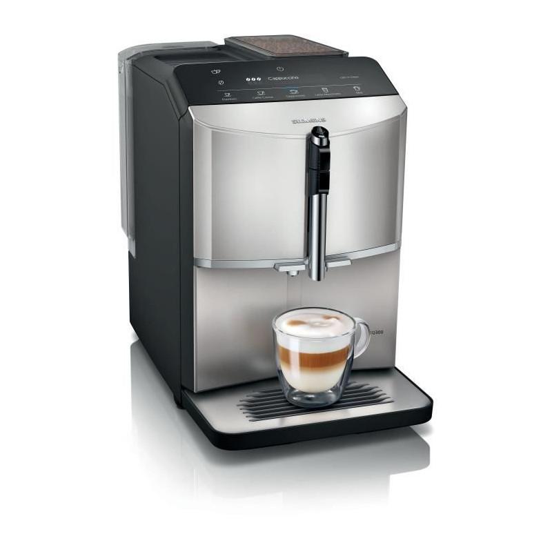 SIEMENS - EQ300 S300 - 5 boissons, bac a grains 250g, réservoir d'eau 1,4L, Bandeau sensitif avec ecran LCD coffeeDirect Select et fonction One Touch, Buse a lait milkPerfect, fonction double tasse, technologie iAroma avec broyeur céramique, entretien Calc'nClean, percolateur amovible, broyeur céramique
