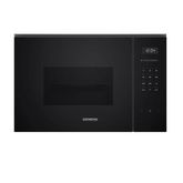 Siemens BE555LMB1F Le micro-ondes iQ500 BE555LMB1F de Siemens, avec une capacité de 25 litres, est idéal pour réchauffer, décongeler et cuisiner rapidement tout en s'intégrant parfaitement dans votre cuisine. Avec une puissance maximale de 900 W et 5 niveaux de puissance, il vous permet de gagner du temps dans vos préparations. Sa fonction grill de 1,2 kW offre la possibilité de dorer vos plats à la perfection. Grâce aux 8 programmes automatiques cookControl8, vous obtenez des résultats parfaits sans effort. Les commandes touchControl permettent une navigation intuitive et précise. Ce modèle est équipé de la fonction humidClean pour un nettoyage facile par hydrolyse. Sa cavité en inox et son plateau tournant en verre de 31,5 cm assurent une répartition homogène de la chaleur. Ce micro-ondes est conçu pour une installation encastrable dans une colonne, avec une ouverture de porte électronique.