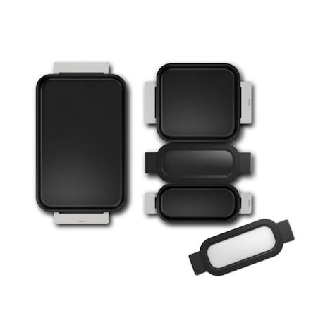 2 x Flex Pan taille S avec couvercle en verre : 30 x 11 cm (haut avec poignées) / 20 x 7,5 cm (bas).