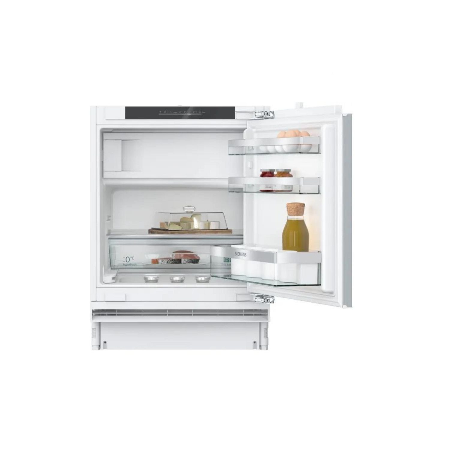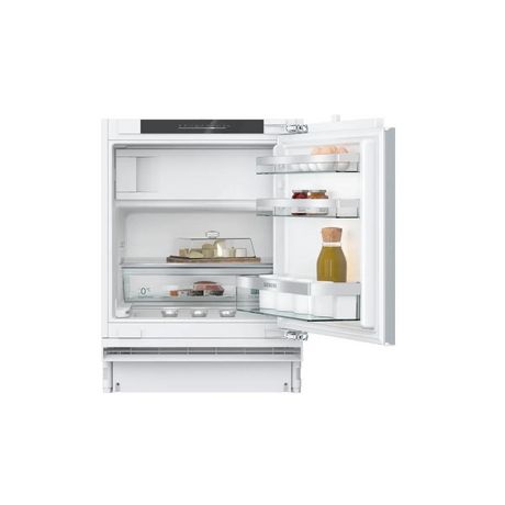 Siemens KU22LADD0 Réfrigérateur compact KU22LADD0 de Siemens encastrable avec compartiment congélateur 4 étoiles pour une fraîcheur permanente : zone climatisée, accès facile et alarme de porte. La touche Super-Réfrigération abaisse la température pendant une période définie afin de rafraîchir rapidement les aliments que vous rangez dans votre réfrigérateur.