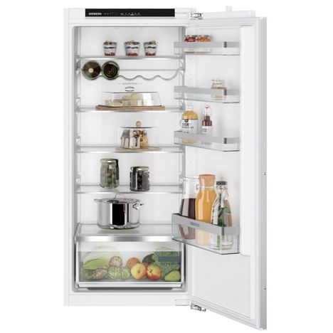 Siemens KI41RVFE0 Réfrigérateur encastrable iQ300 Siemens KI41RVFE0avec lumière LED éclatante, clayettes particulièrement stables et autoAirflow pour des conditions optimales de conservation des aliments. Éclairage LED : avec un éclairage puissant et homogène, vous trouvez rapidement tout ce qu'il vous faut dans votre réfrigérateur. Les fruits et légumes restent croquants dans le tiroir freshBox pourvu d'un fond ondulé. autoAirflow : une température uniforme pour conserver la fraîcheur de vos aliments plus longtemps. Clayettes très résistantes, en verre de sécurité, faciles à nettoyer.