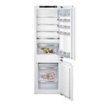 Siemens KI86SADE0 Réfrigérateur combiné intégrable à pantographe iQ500 Siemens KI86SADE0, avec technologie lowFrost et hyperFresh plus pour garder les aliments frais jusqu'à 2 fois plus longtemps. Compartiment hyperFresh plus avec régulation d'humidité : conserve fruits et légumes frais 2x plus longtemps. Technologie lowFrost : dégivrage plus rapide. Clayettes easyAccess : chargement et un déchargement facile. Les aliments, même placés au fond, restent facilement accessibles. La touche Super-Réfrigération abaisse la température pendant une période définie afin de rafraîchir rapidement les aliments que vous rangez dans votre réfrigérateur. Avec la varioZone tous les tiroirs et les clayettes du congélateur sont complètement amovibles permettant ainsi de stocker des produits de toutes tailles. Flexibilité totale et rangement optimisé.