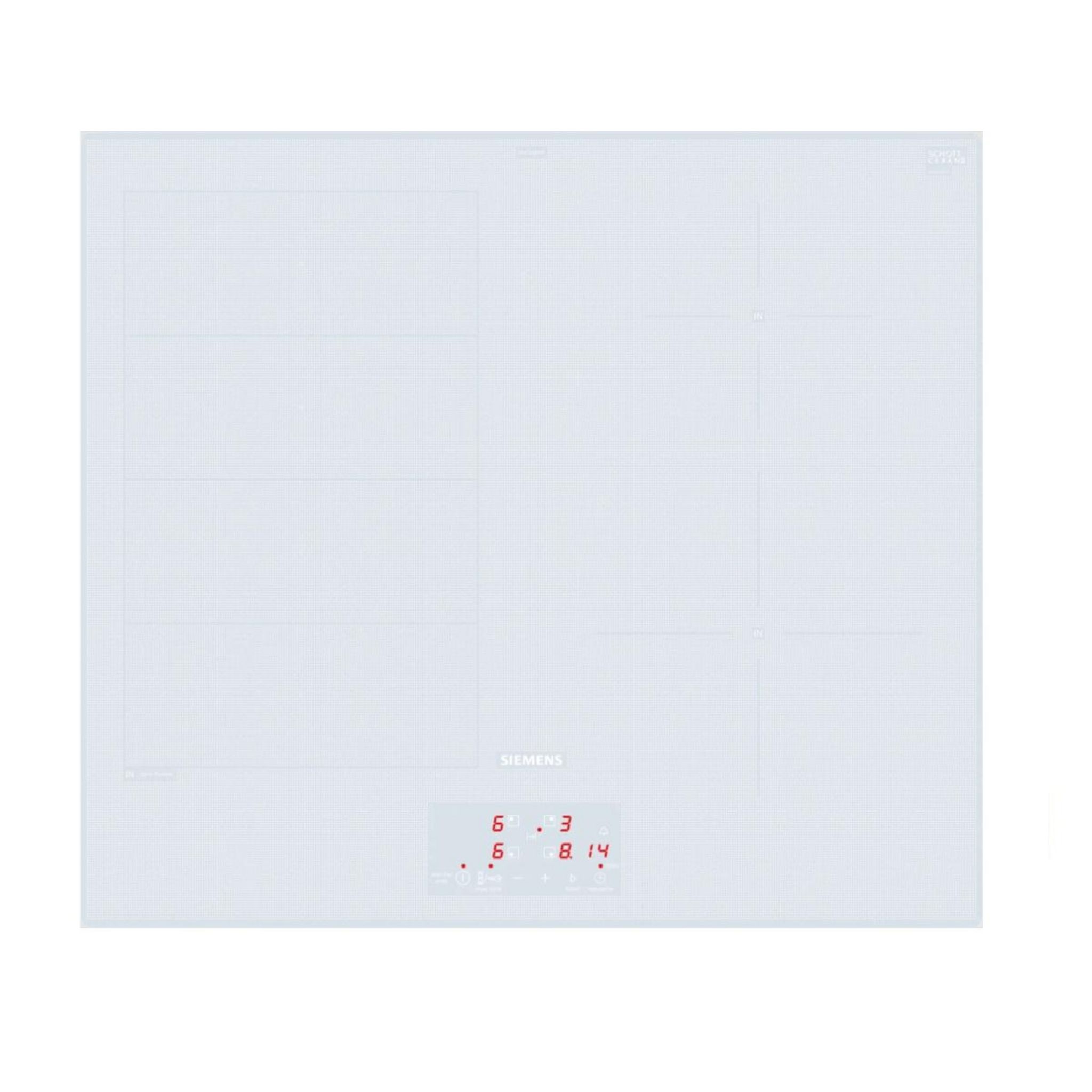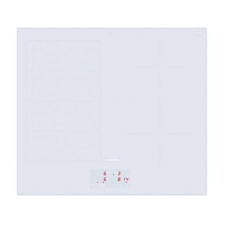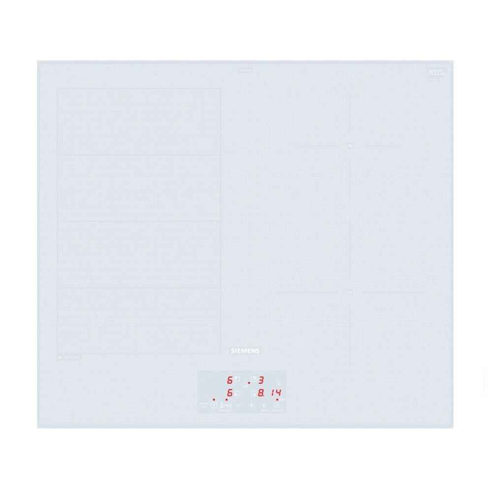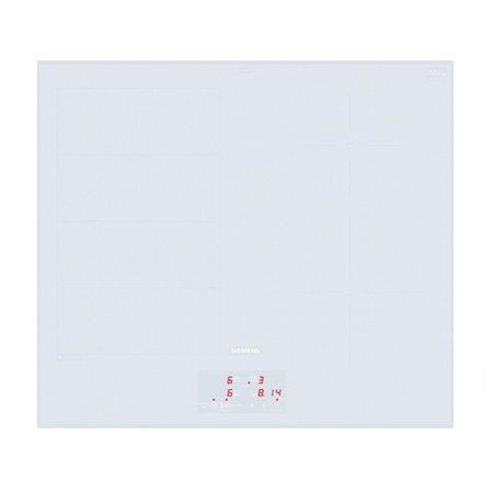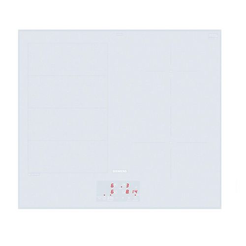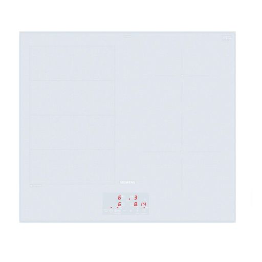 Siemens EX612BEB1F - Type de produit : Table à induction.Appellation produit/famille : Foyer en vitrocéramique.Design : Encastrable.Type d'énergie : Électrique.Nombre de foyers : 4.Zone flexInduction.Zone de cuisson avant gauche : 190 mm, 230 mm, 2.2 kW (PowerBoost 3.7 kW).Zone de cuisson arrière g