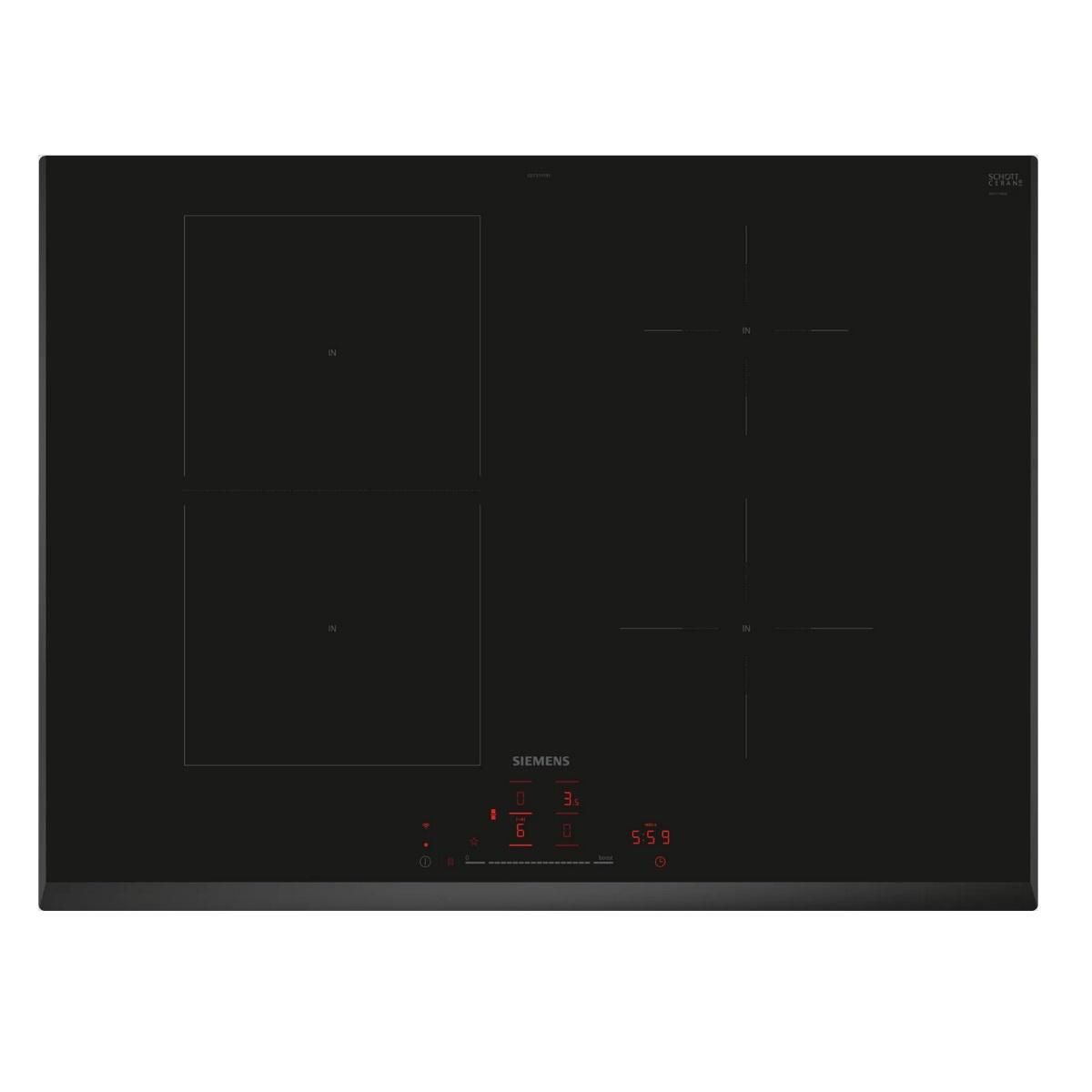 Siemens ED751HSB1E Optez à la plaque de cuisson à induction ED751HSB1E de Siemens pour plus de possibilités de cuisiner et une infinité d'opportunités connectées par Home Connect. CombiZone : combinez deux zones de cuisson à induction pour chauffer vos grandes casseroles. Home Connect : obtenez des