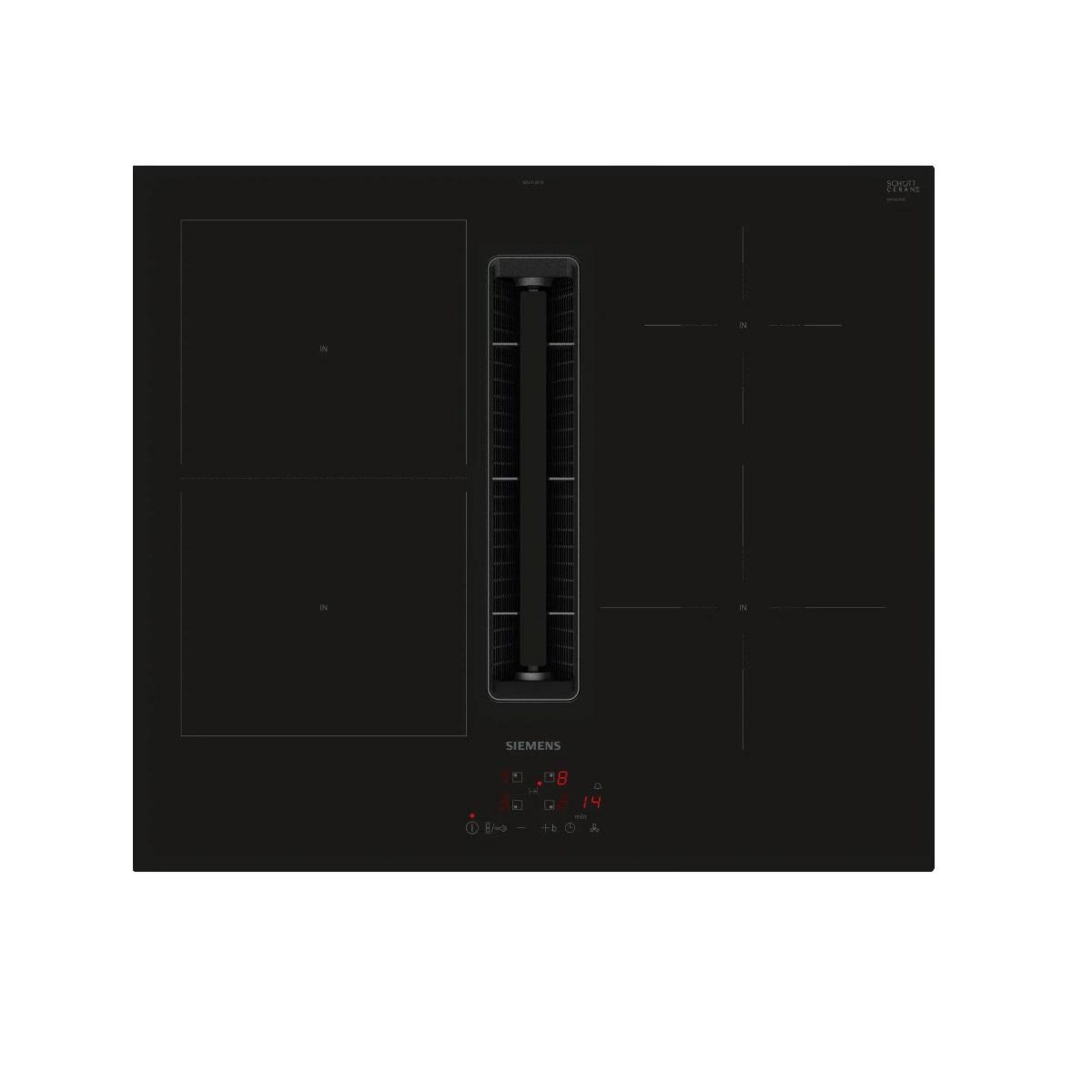 Siemens ED611BS16E Table de cuisson aspirante induction iQ300 Siemens ED611BS16E design entièrement intégrée et affleurante. touchControl : pour une commande particulièrement confortable du Table de cuisson avec une seule touche. Facile à nettoyer - effort de nettoyage minimal pour le hotte aspirant