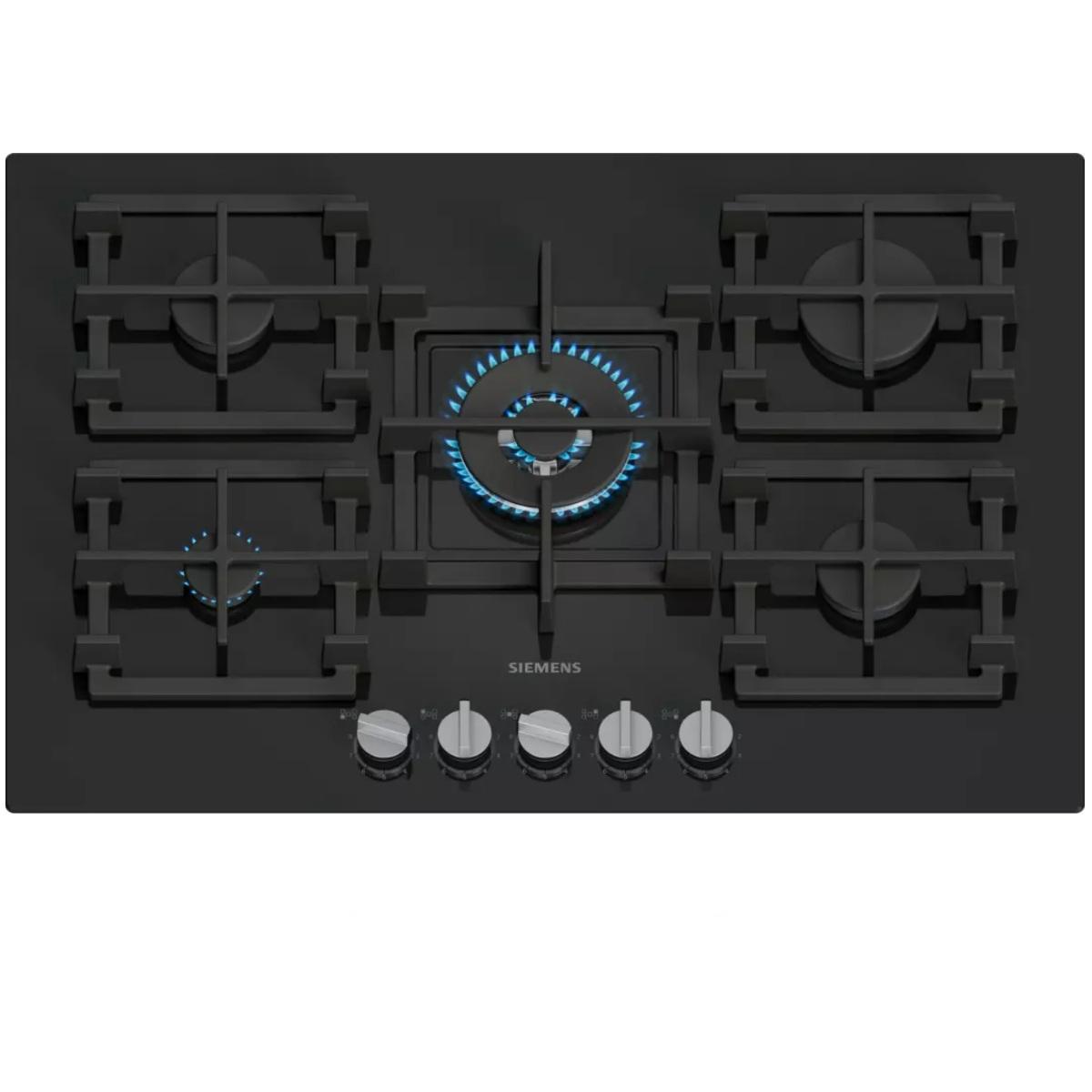 Siemens EP7A6QI40 Table de cuisson gaz en verre trempé iQ500 de Siemens EP7A6QI40 avec technologie stepFlame pour un contrôle précis de la flamme, avec boutons amovibles et supports de casseroles semi-continus pour un nettoyage facile.Technologie stepFlame : contrôle précis de la flamme avec neuf ré