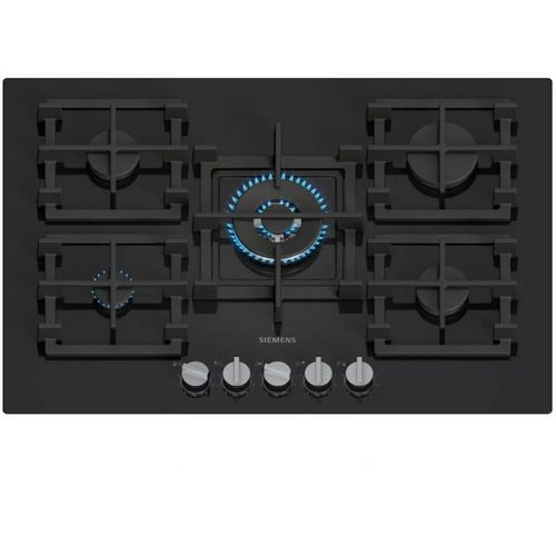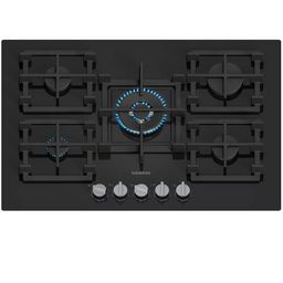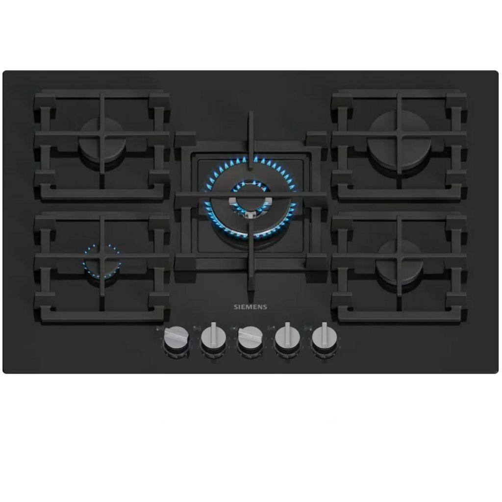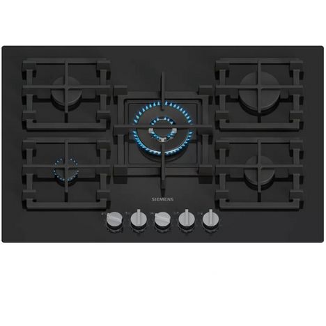 Siemens ER7A6RH40 Table de cuisson gaz en verre trempé iQ700 de Siemens ER7A6RH40 avec technologie stepFlame pour un contrôle précis de la flamme, contrôle intelligent de la hotte, boutons amovibles et supports de casseroles semi-continus pour un nettoyage facile.Technologie stepFlame : contrôle pré