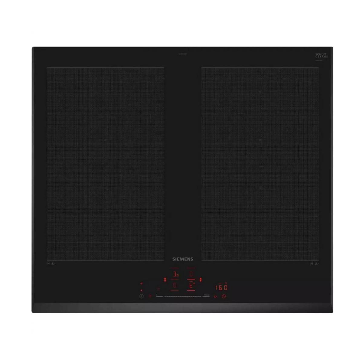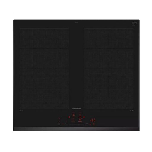 Siemens EX651HXC1E La table à induction iQ700, EX651HXC1E, de Siemens, au design sans cadre et finition verre noir, réunit l'élégance minimaliste et l'innovation technologique pour faire de votre cuisine un espace aussi performant qu'inspirant. Avec ses zones flexInduction intelligentes, cette table détecte automatiquement la forme, la taille et la position de vos casseroles pour adapter précisément la chaleur. Vous gagnez en efficacité, en sécurité et en confort, même avec de grands ustensiles. Que vous saisissiez une viande à feu vif ou mijotiez une sauce délicate, les 4 zones de cuisson puissantes jusqu'à 3700 Watts avec PowerBoost vous offrent une montée rapide en température tout en maîtrisant parfaitement l'énergie. La technologie touchSlider vous permet de régler la puissance d'un simple glissement de doigt, tandis que la fonction fryingSensor Pro garantit une température de cuisson stable, sans débordement ni brûlure. Grâce à flexMotion, vos réglages vous suivent automatiquement lorsque vous déplacez une casserole d'une zone à une autre : une innovation qui libère vos gestes et optimise votre confort. Totalement connectée via Home Connect, cette table vous accompagne dans toutes vos recettes, vous informe à distance, et peut même ajuster automatiquement la hotte compatible grâce à cookConnect. Le bouton MyButton vous donne également un accès instantané à vos réglages préférés, pour une personnalisation maximale. Enfin, avec ses fonctions de sécurité complètes, dont la détection de surchauffe, la sécurité enfants, la fonction pause ou encore les témoins de chaleur résiduelle, la table de cuisson assure une utilisation sûre et sereine, jour après jour.