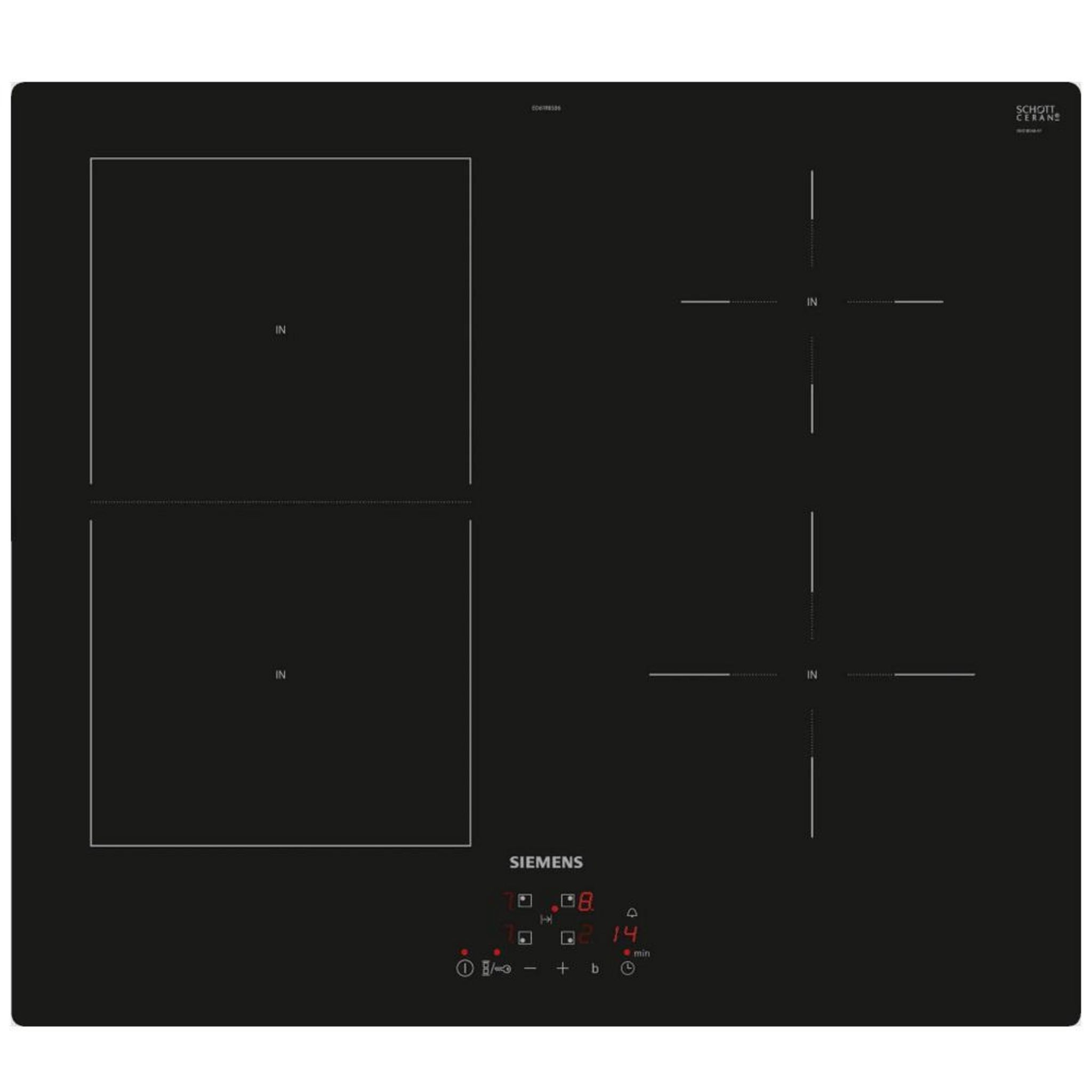 Siemens ED61RBSB6E Table à induction iQ500 de Siemens ed61rbsb6e, 60 cm, Noir, sans cadre. Avec la table combiInduction, des nouvelles possibilités de cuisson s'offrent.CombiZone : combinez deux zones de cuisson à induction pour chauffer vos grandes casseroles.Le bandeau touchControl permet de contr