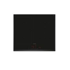 - Type de produit : Table induction.Foyer en vitrocéramique.Type de construction : Encastrable.Type de table : Electrique.Nombre de foyers : 4.Puissance de raccordement : 6.9 kW.Témoin de chaleur résiduelle : Indépendant.Emplacement du bandeau de commande : Devant.Matériau de la surface : Vitrocéramique.CombiZone : utilisez des ustensiles de cuisson plus grands en combinant deux zones de cuisson en une seule grande zone.Table de cuisson 60 cm : espace pour 4 casseroles ou poêles.17 positions de réglage : adaptez précisément la puissance sur 17 niveaux (9 niveaux principaux et 8 intermédiaires).Timer avec fonction arrêt : éteint la zone de cuisson à la fin du temps programmé (ex. : pour les œufs à la coque).PowerBoost sur chaque foyer.Fonction QuickStart : détection automatique des récipients sur la zone de cuisson.Fonction ReStart : en cas d'arrêt involontaire, rétablissez tous les réglages précédents en remettant la table de cuisson en marche dans les 4 secondes.Design: 3 biseaux.Témoin de chaleur résiduelle à 2 niveaux : indique les zones de cuisson qui sont encore chaudes.Timer avec fonction arrêt : éteint la zone de cuisson à la fin du temps programmé (ex. : pour les œufs à la coque).Minuteur : une alarme retentit à la fin du temps programmé (ex. : pour les pâtes).Réglage du volume sonore de la table en fonction des besoins.Sécurité enfants.Interrupteur principal : éteignez toutes les zones de cuisson par simple pression d'un bouton.Sécurité surchauffe.Épaisseur minimale du plan de travail : 16 mm.Fonction PowerManagement : permet de réduire la puissance de la table pour convenir à toute installation électrique.Longueur du cordon électrique : 100.0 cm.Tension : 220-240 V.Fréquence : 50, 60 Hz.Couleur de la surface : Noir.Dimensions appareil H x L x P : 51 x 592 x 522 mm.Dimensions du produit emballé : 130 x 750 x 600 mm.Poids net : 10.7 kg.Poids brut : 13.0 kg.