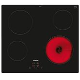 Siemens ET61RBEB8E Table de cuisson moderne iQ100 Siemens ET61RBEB8E en vitrocéramique pour plus de plaisir à cuisiner et moins d'efforts de nettoyage. Le bandeau touchControl permet de contrôler très précisément chacune des quatre zones de cuisson. La sécurité enfants bloque toutes les fonctions, p