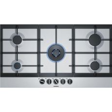 Siemens EC9A5RB90 Table inox gaz iQ500 Siemes EC9A5RB90 avec la technologie stepFlame pour un contrôle précis de la flamme en 9 niveaux de puissance. Technologie StepFlame : contrôle précis de la chaleur en 9 niveaux de puissance. Wok double couronnes avec une puissance de 5 kW. Idéal pour la cuisso