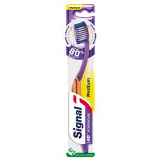La brosse à dents medium Signal 4 D Interdentaire nettoie 99 % des bactéries* et élimine 80 % de la plaque dentaire**.