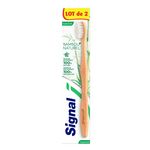 La brosse à dents Bambou Naturel Signal prend soin de vos dents en douceur. Elle est dotée de poils souples pour des dents propres. La tête ovale et le cou affiné de cette brosse à dents vous offrent un brossage confortable. Conservez-la dans un endroit sec et propre après utilisation. La brosse à dents Signal possède un manche en bambou 100 % naturel et est contenue dans un emballage en carton 100 % recyclé et recyclable. La brosse à dents Bambou Naturel Signal est également disponible en format medium.