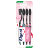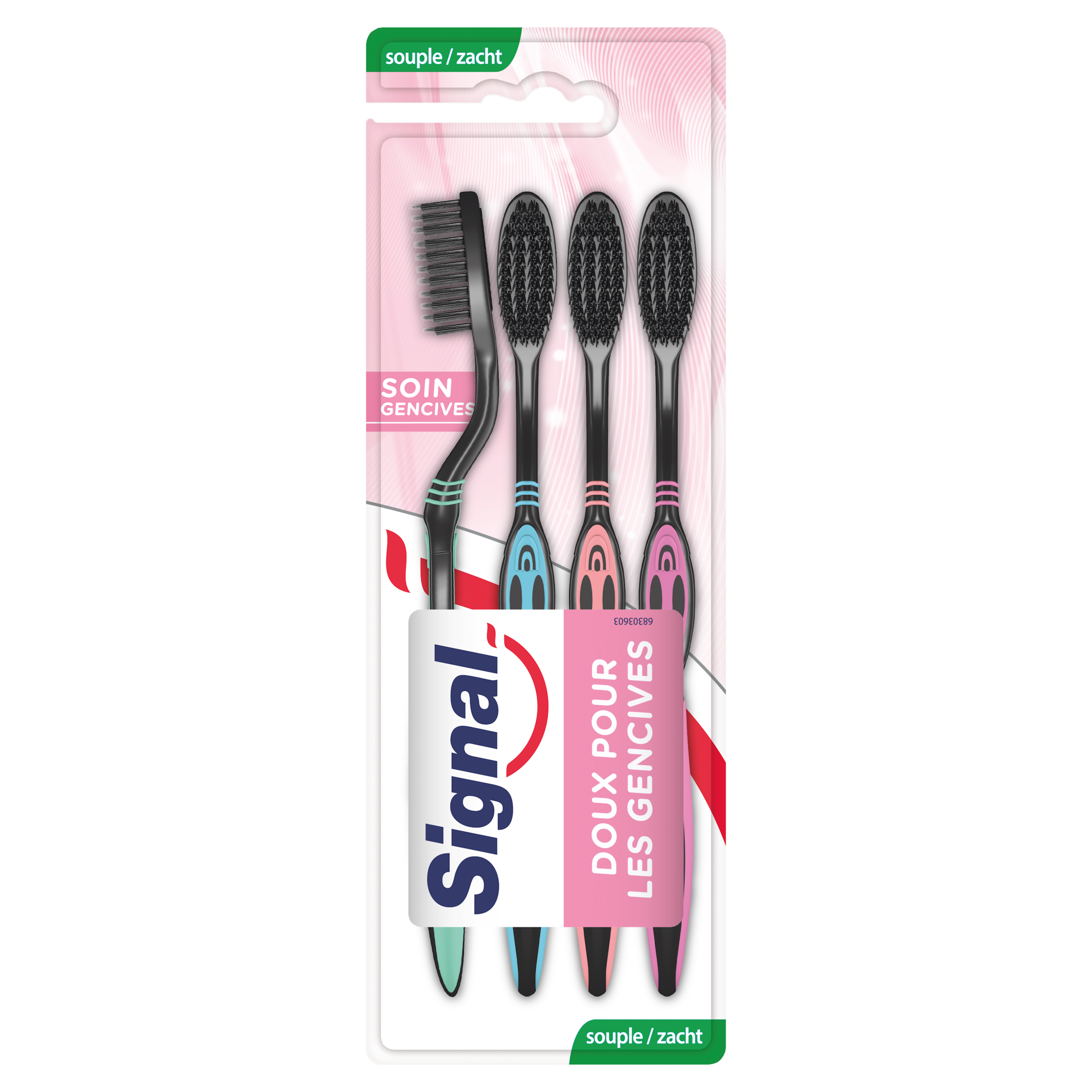 Vous avez des gencives sensibles ? Découvrez la brosse à dents souple Signal Soin Gencives pour prendre soin de vos dents et de vos gencives en douceur. Cette brosse à dents est dotée de poils à pointes effilées pour un brossage confortable et doux pour les gencives. Son cou à 3 angles facilite l'accès aux dents du fond et assure un nettoyage en profondeur. La brosse à dents Signal Soin Gencives vous est proposée en lot de 4 brosses à dents souples avec différentes couleurs pour toute la famille. Pour un résultat optimal, complétez votre routine avec le dentifrice Signal Integral 8 Herbal Soin Gencives.