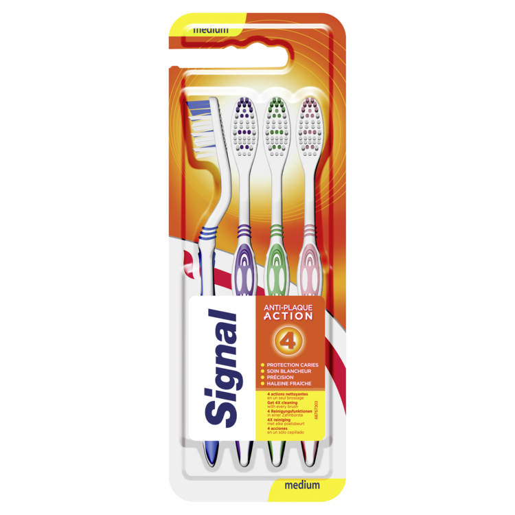 Avec quoi ? Une brosse à dents Signal manuelle ou électrique et un dentrifrice Signal composé de Fluor. Veillez à ce que la tête de votre brosse soit adaptée à votre bouche et atteigne toutes les zones. Signal propose une gamme très complète de brosses à dents et et de dentifrices.