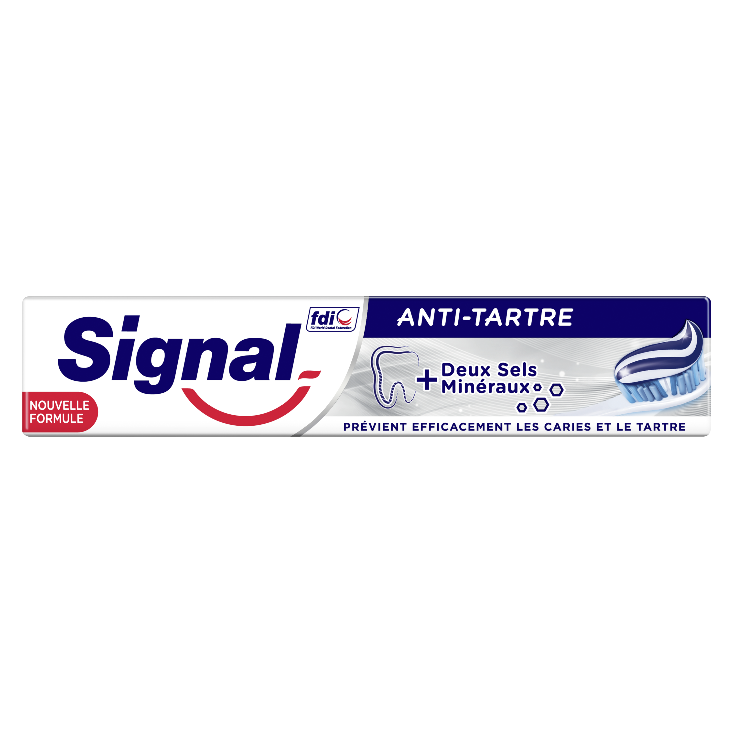 Le dentifrice Anti-Tartre Signal limite la formation de la plaque dentaire et freine la calcification, responsable du tartre