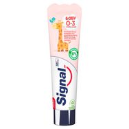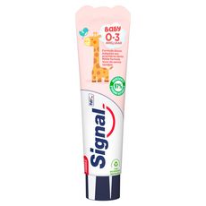 Signal Baby, mon premier dentifrice. Le dentifrice enfants Signal Baby est spécialement adapté pour les premières dents. Sa formule douce protège les dents des bébés contre les caries tout en prenant soin de leurs gencives. Votre enfant va adorer son goût délicat de framboise. Le dentifrice Signal Baby est idéal pour les enfants de 0 à 3 ans et son dosage en fluor est adapté aux tout-petits. Le moyen le plus simple de prévenir les caries est de se brosser les dents deux fois par jour avec un dentifrice et une brosse à dents adaptés. En éduquant les enfants dès leur plus jeune âge, nous les aidons à adopter de bonnes habitudes d'hygiène bucco-dentaire pour toute la vie. Chez Signal, nous pensons que votre sourire est l'expression de votre personnalité et de votre confiance en vous. Notre mission : améliorer la santé bucco-dentaire de tous, pour que chacun d'entre nous libère le pouvoir de son sourire. Signal accompagne les Français depuis 1961 pour leur transmettre les bons gestes, dès le plus jeune âge et démontrer l'importance d'un brossage deux fois par jour, matin et soir. Nous proposons des dentifrices adaptés à toutes les tranches d'âge. Avec Signal, chaque sourire compte !