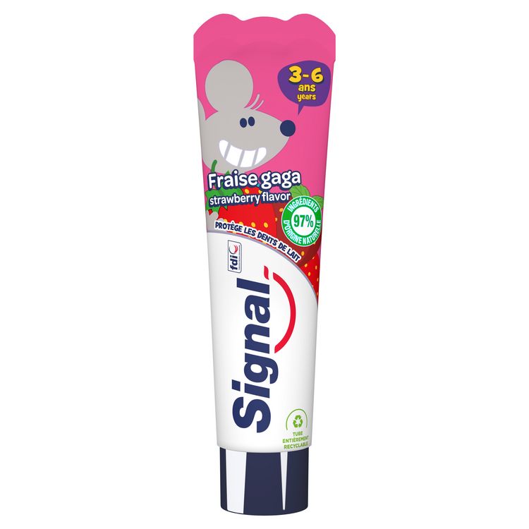 Le dentifrice Signal Kids Fraise Gaga est spécialement conçu pour les enfants de 3 à 6 ans et adapté aux dents de lait