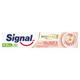 Offrez à vos dents une protection complète avec le dentifrice Signal Nature Elements Integral 8. La formule douce de ce dentifrice Sel Rose & Camomille au zinc minéral aide à prévenir les problèmes de gencives et apporte une action antibactérienne efficace. Cliniquement prouvé, le dentifrice combine 8 actions : protection contre les caries, renforcement des gencives et de l'émail, haleine fraîche, aide pour retrouver la blancheur naturelle des dents, anti-plaque, anti-tartre et antibactérien. Résultat : une protection complète inspirée de la nature, pour toute la famille. Nos conseils Signal pour une bonne santé bucco-dentaire : se brosser les dents deux fois par jour et changer de brosse à dents tous les 3 mois. Chez Signal, nous pensons que votre sourire est l'expression de votre personnalité et de votre confiance en vous. Notre mission : améliorer la santé bucco-dentaire de tous, pour que chacun d'entre nous libère le pouvoir de son sourire. Signal accompagne les Français depuis 1961 pour leur transmettre les bons gestes, dès le plus jeune âge et démontrer l'importance d'un brossage deux fois par jour, matin et soir. Attentifs à la protection de la planète, nous prenons des mesures pour limiter l'impact environnemental de nos produits. En partenariat avec TerraCycle®, nous avons lancé un programme de recyclage gratuit, pour donner une seconde vie à vos brosses à dent et vos tubes de dentifrice. Avec Signal, chaque sourire compte !