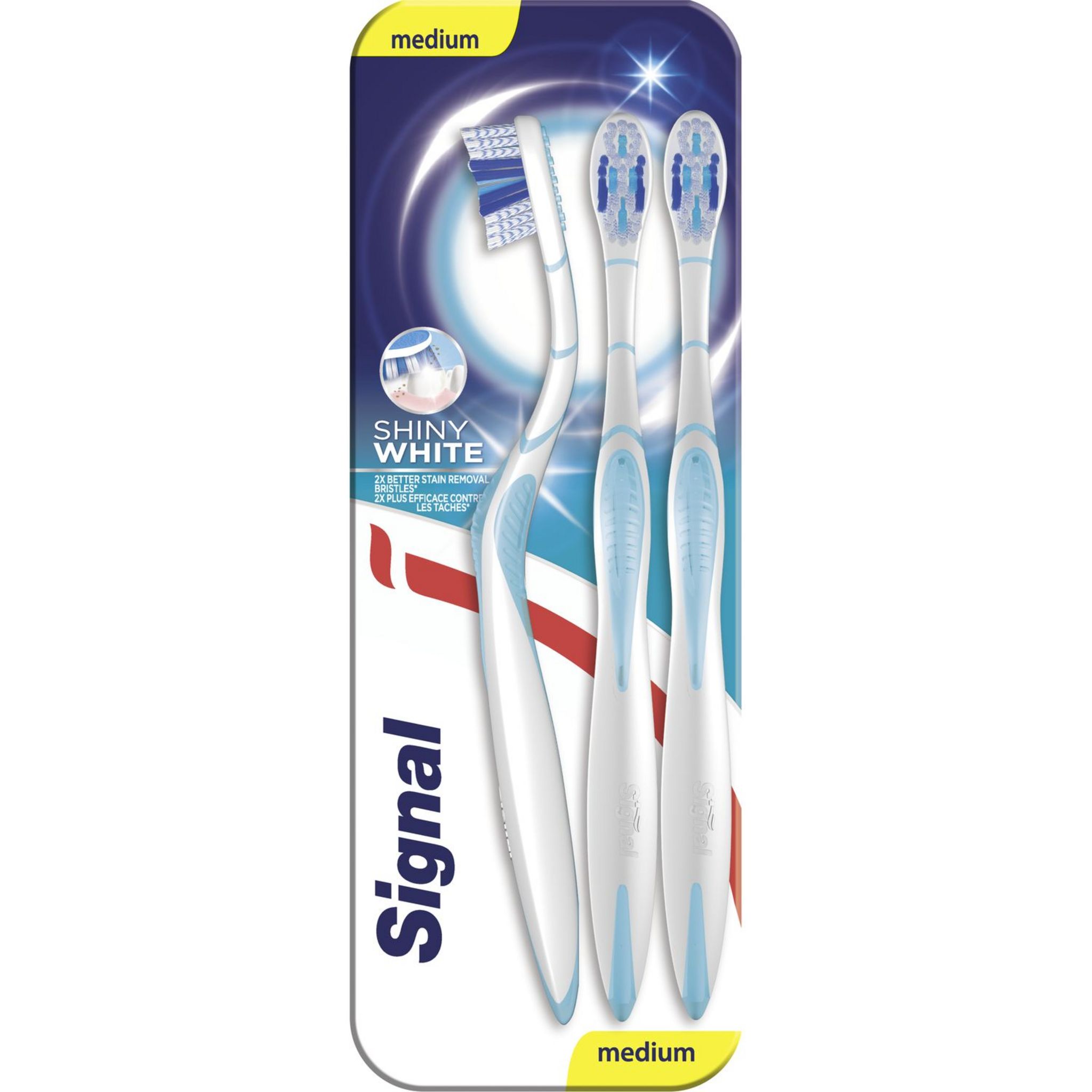 La brosse à dents Signal V-Series Shiny White combine 2 aspects: l’association de son cou à 3 angles et ses poils V-technologie permettent un nettoyage en profondeur pour des dents saine. Sa tête à 3 angles facilite l’accès aux dents du fond. Son brosse-langue procure une haleine fraîche. Deux fois plus efficace contre les tâches. Signal accompagne les Français depuis 1961 et s’engage pour transmettre les bons gestes d’hygiène bucco-dentaire, et ce dès le plus jeune âge. Les bonnes habitudes doivent être prises par tous, c’est pourquoi Signal s’applique à démontrer l’importance d’un brossage deux fois par jour, matin et soir. De plus, la marque collabore étroitement avec de nombreux experts et est partenaire du Collège National des Chirurgiens-Dentistes Universitaires en Santé Publique. Signal s’est associé également à l’UNICEF dans le cadre d’un partenariat pour garantir aux enfants l’accès à l’eau potable et donc à l’hygiène dans les écoles du Mozambique. Enfin, la marque collabore étroitement avec de nombreux experts et est partenaire depuis 2009 du Collège National des Chirurgiens Dentistes Universitaires en Santé Publique. Conseils pour une bonne hygiène bucco-dentaire : brossez-vous les dents après chaque repas, changez de brosse à dents Signal tous les 2 à 3 mois et consultez votre dentiste au moins deux fois par an. Pensez également à couper l’eau pendant le brossage. Brosse à Dents