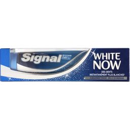 Les Dentifrices Signal White Now, pour des dents instantanément plus blanches dès le premier brossage*. Un beau sourire et des dents éclatantes sont des atouts beauté essentiels. Grâce à la technologie Blue Light inspirée de la science des couleurs, le Dentifrice Signal White Now rend vos dents instantanément plus blanches dès le premier brossage. En effet, Les pigments bleus délicats présents dans la mousse agissent au contact des dents comme un "filtre couleur" créant un effet d'optique immédiat, qui continue d'agir sur vos dents même une fois la mousse rincée. Le Dentifrice blanchissant Signal White Now a également une action blancheur progressive et élimine les taches. Sa formule au fluor est compatible avec un usage quotidien. *Etude clinique portant sur la mesure de l’effet d'optique de blancheur instantanée réalisée sur 78 personnes. L’effet blancheur instantanée est temporaire. Signal accompagne les Français depuis 1961 et, grâce à des équipes mondiales d’experts, la recherche Signal a innové en 2008 avec le Dentifrice Signal White Now, qui s’est vite imposé comme la référence n°1 sur le marché de la blancheur. Conseils pour une bonne hygiène bucco-dentaire : brossez-vous les dents après chaque repas, changez de brosse à dents Signal tous les 2 à 3 mois et consultez votre dentiste au moins deux fois par an. Découvrez également d'autres dentifrices, au sein de la marque Signal, comme le dentifrice blancheur, le dentifrice haleine pure et le dentifrice white now. Pensez également à couper l’eau pendant le brossage. Signal Dentifrice Tube White Now 75ml