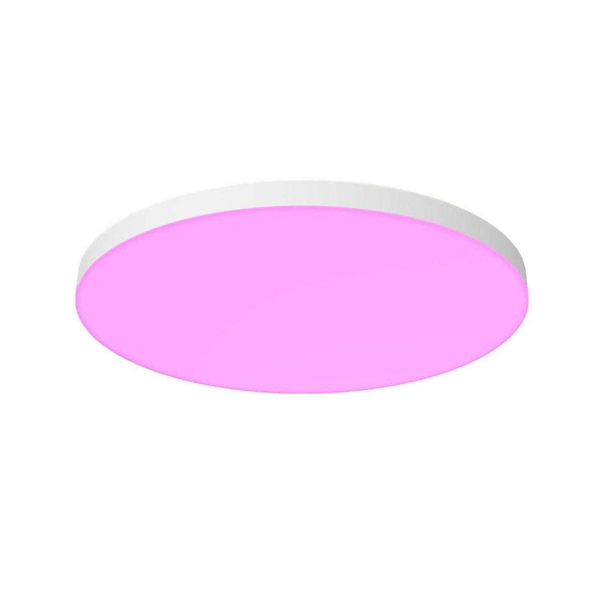 La lampe de plafond Philips Hue Datura est une solution d'éclairage intelligent qui permet de créer une ambiance personnalisée grâce à ses deux sources lumineuses. Avec la possibilité de choisir parmi 16 millions de couleurs et 50 000 nuances de blanc, vous pouvez adapter l'éclairage à chaque moment. Sa forme ronde et sa finition blanche apportent une touche élégante à votre salon, chambre ou cuisine. Idéale pour créer une atmosphère dynamique et personnalisée, que ce soit pour travailler, se détendre ou recevoir des invités. Cette lampe offre une puissance de 67 watts et un flux lumineux de 4850 lumens, avec une température de couleur allant de 2000 à 6500 kelvins. Elle est compatible avec les assistants vocaux Amazon Alexa et Google Assistant, ainsi qu'avec l'application Philips Hue. Conçue en plastique, elle présente un design sans cadre et une alte d'efficacité énergétique G.