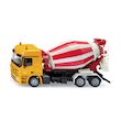 Apporter du béton prêt à l'emploi sur le chantier est la tâche du camion malaxeur. Le modèle 1:50 avec carrosserie Liebherr sur un châssis à 3 essieux avec cabine Mercedes Actros s'acquitte sans peine de cette tâche. Le tambour est pivotant et imprimé d'un design de bandes rouges et blanches caractéristique. Le bec verseur est rotatif et peut être rallongé grâce à deux éléments fournis.