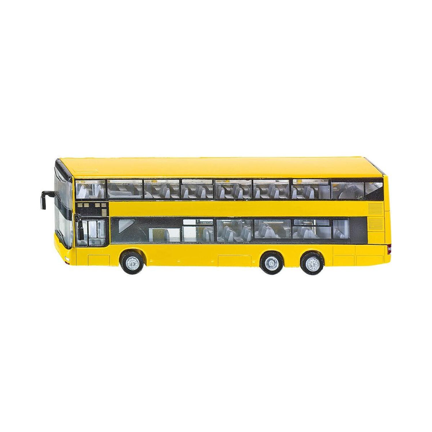 Les autobus double étage bien connus à Berlin de la marque MAN ne font pas uniquement en version originale une apparition remarquable. Même le modèle métallique 1:87 de SIKU laisse pressentir la grandeur réelle de cet autobus. Ce modèle 3 essieux roule sur des pneus en matériau caoutchouté soulignant tout le confort. La représentation extrêmement détaillée en intérieur comme en extérieur est sans précédent sur le marché des jouets. Ce véhicule est suffisamment robuste d'un côté pour la chambre enfant et il représente de l'autre côté un complément de haute qualité dans la vitrine du collectionneur.