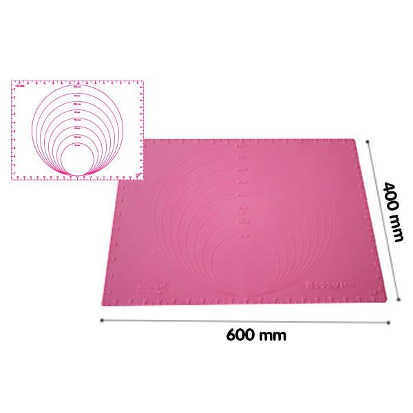 Silikomart 23.013.19.0069 - Tapis en silicone avec anneaux de guidage en relief et mesures indiquées en centimètres et en poucesIdéal pour étaler et couper avec précision la pâte à sucre et tout type de pâte modelableLes diamètres des cercles mesurent de 14 cm à 30 cmDimensions : 60 x 40 cmCouleur