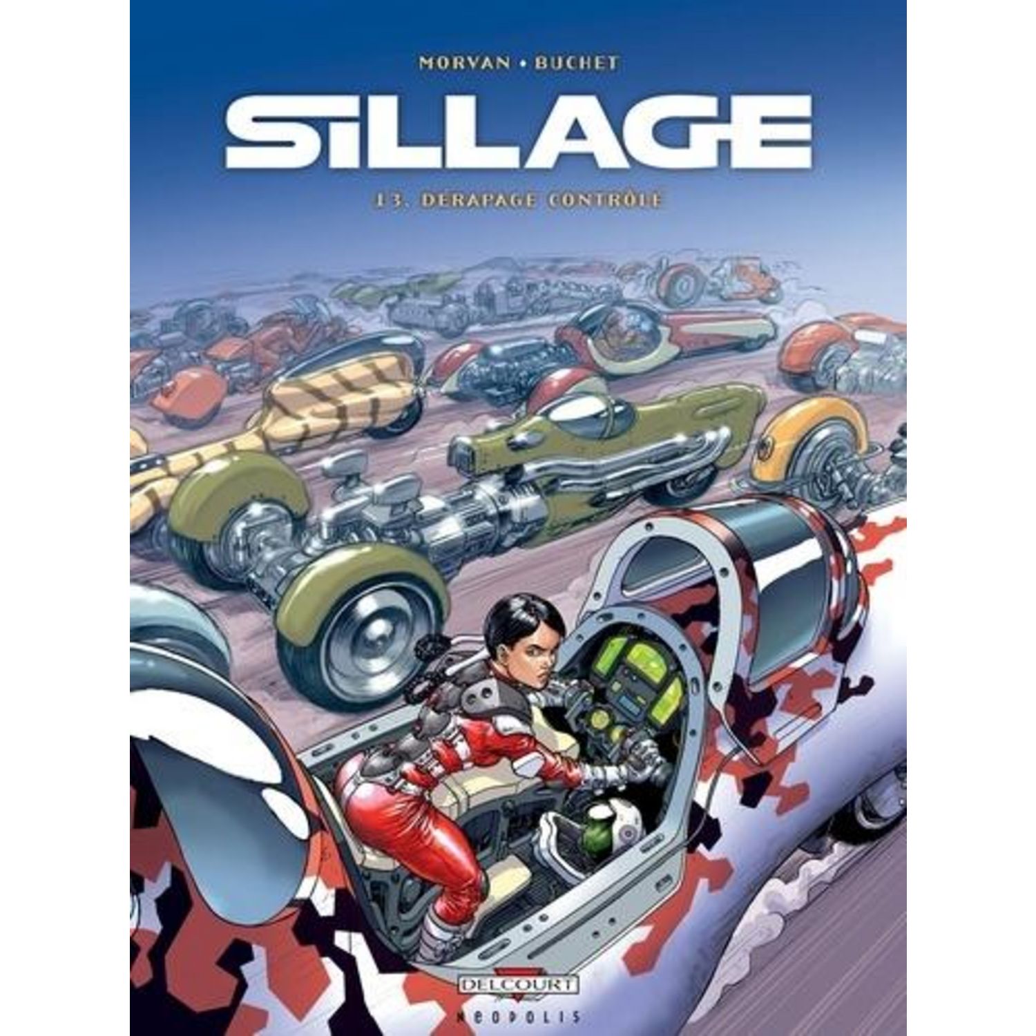 Navire amiral de la Constituante, croiseurs d'interventions, astronefs amiraux, frégates de guerre, bidonefs, téléportails, navettes de maintenance, prisonefs, vaisseaux pirates... Ils sont des millions à constituer un formidable convoi spatial lancé la recherche de nouvelles planète! exploitables. Dans ce convoi nommé SILLAGE se côtoient toutes sortes de peuples d'origines et de croyance! multiples. Mais une race y demeurait inconnue : les êtres humains. Et puis débarqua NÂVIS! Des courses clandestines se déroulent sur des planètes colonisées par Sillage. Parmi les pilotes, il y en a un sous le casque duquel se cache NAVIS. Mais elle n'en a que faire de participer. Elle doit gagner ! Sans quoi, son avocat sera abattu par des tueurs qui le retiennent en otage. Ces derniers ne sont autres que les deux ex-complices de Kérhé-Dizzo. Entre les révélations de Bobo, un guet-apens du Magister et une inquiétante visite chez Enshu Atsukau, Nävis va donc devoir slalomer... de contre-braquages en dérapages contrôlés.
