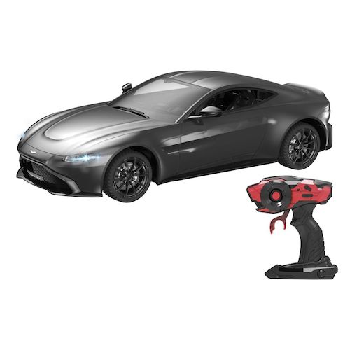 VOITURE TÉLÉCOMMANDÉE ASTON MARTIN 1:14 : voiture RC élégante et réaliste, parfaite pour les passionnés de voitures. VITESSE 15 KM/H : maniable et rapide pour des sensations fortes adaptées aux enfants. FEUX LUMINEUX AVANT ET ARRIÈRE : effets lumineux pour un jeu immersif et captivant. TECHNOLOGIE RADIO 2.4 GHz : pilotage précis, stable et sans interférences, idéal pour l'intérieur et l'extérieur. BATTERIE INCLUSE : jouet prêt à l'emploi pour des heures de jeu.