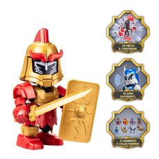 FIGURINES WORLD OF AMOURS - Dès 5 ans. 8 guerriers de 10cm sonores et lumineux à construire (30 pièces) et à collectionner. 2 piles "LR44" incluses.