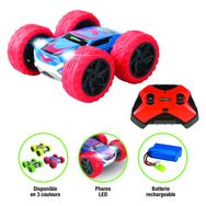 Une accélération foudroyante, des pneus qui encaissent tous les chocs, un système de conduite sur 2 faces, rien ne résiste à cette voiture ! Un assortiment de 3 voitures. Technologie 2,4Ghz. Piles : Batterie incluse (voiture), 2xAAA (télécommande) non incluses. Dès 5 ans.