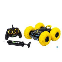 La 360 Tornado de Silverlit encaissent tous les chocs, franchit tous les obstacles à 360° et réalise de superbes acrobaties ! Génial, il possède un système de conduite sur 2 faces. Pour une utilisation à 2 joueurs. Contient une pompe pour gonfler les pneus et régler l'absorption des chocs.