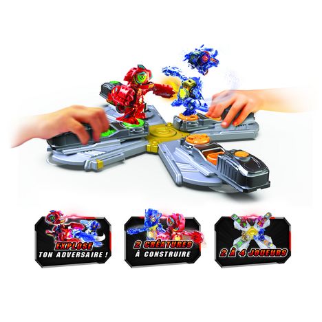BIOPOD KOMBAT DELUXE ARENA - Dès 5 ans. Une arène de 45cm et 2 créatures sonores et lumineuses. Construis, combats et explose tes adversaires. 4 piles "LR44" incluses