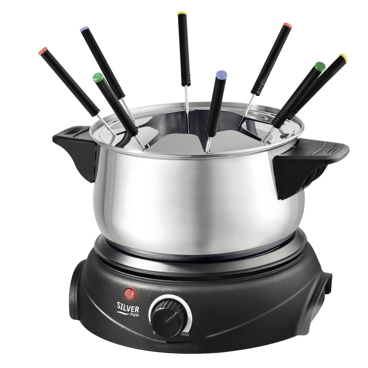 L'appareil à fondue 533 de SilverstyleRégalez-vous avec cet appareil à fondue idéal pour un repas convivial ! Parfait pour la saison hivernale, il vous permettra de réaliser de délicieuse fondue bourguignonne ou savoyarde. Il dispose de 8 piques et d'une capacité de 2l. Vous pourrez ajuster vous mêm