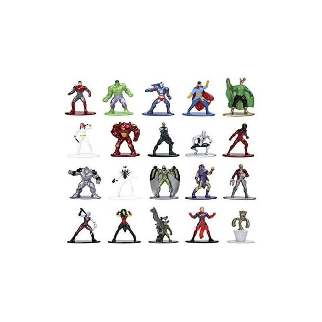 Plonge dans l'univers de la saga Marvel avec ce superbe set de 20 figurines !_x000D_ Tu y retrouveras les célebres personnages de la saga : Armored Spider-Man, Black Widow, Doctor Strange, Hulk, Iron Man, Green Goblin, Nick Fury, Nebula, Scarlet Spider, Loki, Rhino, Rocket, Agent Anti-Venom, Adam Warlock, Hulkbuster, Vulture, Groot, Star-Lord, Iron Patriot, Mantis. _x000D_ _x000D_ Les figurines sont en métal et mesurent 4cm._x000D_ Tu vas pouvoir rejouer de nombreuses scenes des films et retrouver tes personnages préférés !_x000D_ A partir de 3 ans.