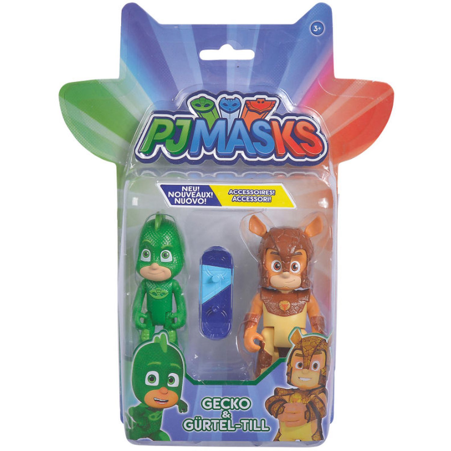 Avec les figurines de Gluglu et Tatouro'Tom les enfants pourront rejouer leurs aventures préférées de la 3e saison de la série TV Pyjamasques à la maison.