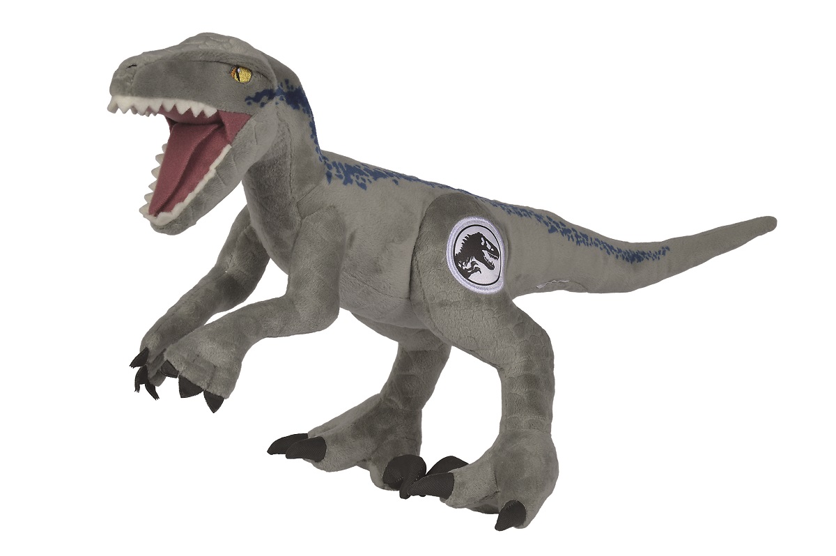 Tu vas adorer le grand Raptor Blue en peluche de Jurassic Park de 30 cm mais attention il est affamé !
