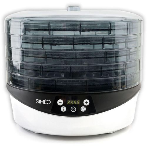 La durée de garantie est de 2 ans. Caractéristiques générales Type de produit Déshydrateur Coloris Blanc Puissance 500 Thermostat réglable Oui Curseur de fin de séchage Non Couvercle transparent Oui Brassage de l'air Par ventilateur Type de commande Mécanique Grille