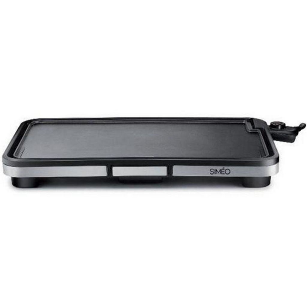 Simeo PLA470 Plancha électrique Siméo PLA470 dotée d'une grande plaque antiadhésive pour une utilisation convivale pour 8 à 10 personnes. Parfaite pour cuire des pièces de viande ou de poissons, les poêlées de légumes...Résistance intégrée à la plaque pour une montée en température quasi-instantanée