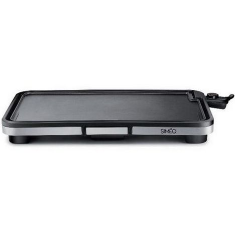 Simeo PLA470 Plancha électrique Siméo PLA470 dotée d'une grande plaque antiadhésive pour une utilisation convivale pour 8 à 10 personnes. Parfaite pour cuire des pièces de viande ou de poissons, les poêlées de légumes...Résistance intégrée à la plaque pour une montée en température quasi-instantanée, sans préchauffage. Thermostat extractible, avec loquet de déverrouillage, réglable selon 5 niveaux de températures ajustables dont maintien au chaud. Chaleur uniformément répartie sur la plaque pour une cuisson précise et saine. Larges sillons d'évacuation des graisses et jus de cuisson pour une cuisson dorée et snackée. Bac récupérateur jus et graisses amovible pour faciliter le nettoyage.