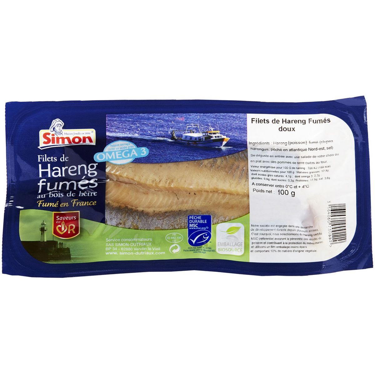 Ingrédients : Hareng (POISSON) fumé (hareng 96.4%: clupea harengus pêché en Atlantique Nord-Est, sel)