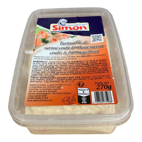 Tartinable de surimi -crabe tourteau saveur crabe et fromage frais 270g
