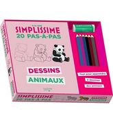 Dans ce coffret Simplissime il y a : Un livre de 20 pas-à-pas pour dessiner en quelques coups de crayon tous les animaux les plus mignons, 5 crayons de couleurs, 1 crayon de papier, 1 gomme, et 1 bloc de croquis pour s'entraîner à réaliser tes plus beaux animaux.Auteur : Herzog LiseEditeur : HACHETT